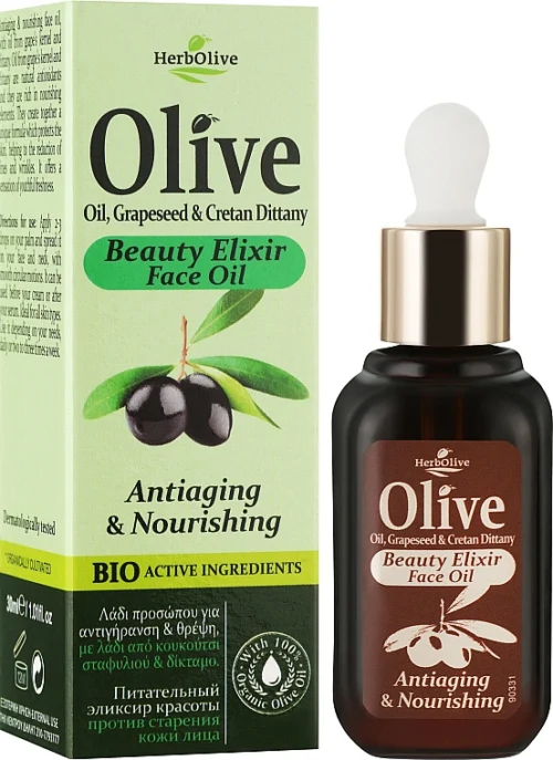 Herbolive Beauty Elixir Face Oil Antiaging & Nourishing aitab niisutada nahka, parandada selle elastsust ning toetada naha loomulikku taastumist. Toode sisaldab hoolikalt valitud koostisosi, mis aitavad nahka niisutada, toita ja kaitsta. Sobib igapäevaseks kasutamiseks.